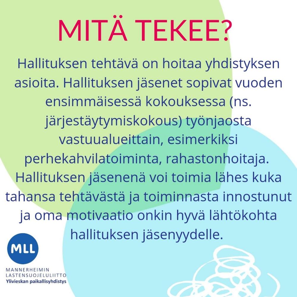 Hallituksen jäsenyys on vapaaehtoisuuteen perustuva luottamustehtävä. Rooleja on tarjolla monenlaisia, eikä kenenkään tarvitse osallistua kaikkeen.